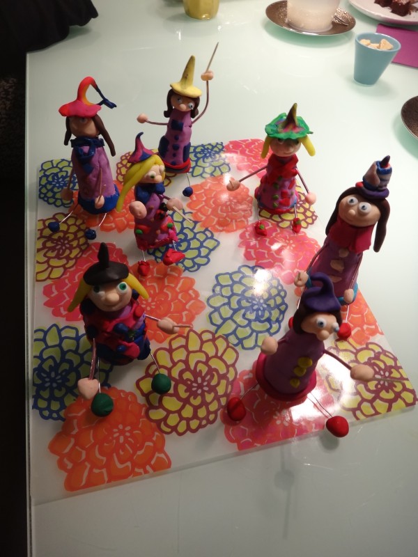 Nous convenons d’un thème et/ou d’un modèle avant l’anniversaire. Pendant l’atelier, tout le monde avance ensemble, étape par étape. Quand tout le monde a terminé, c’est l’heure de la cuisson (la pâte Fimo durcit au four) et après refroidissement chacun peut emporter sa création.