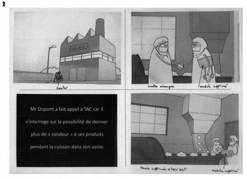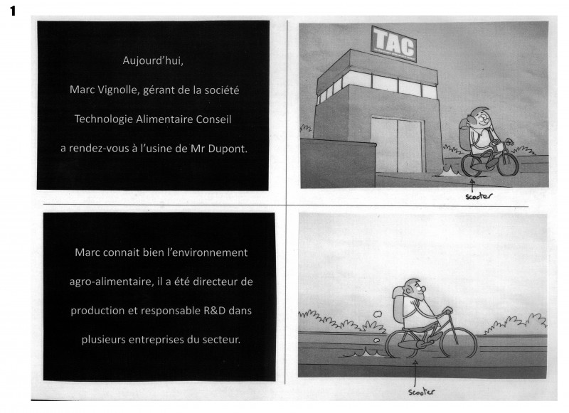 Une partie de story board pour exemple (réalisé pour la société TAC) :
